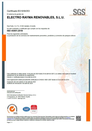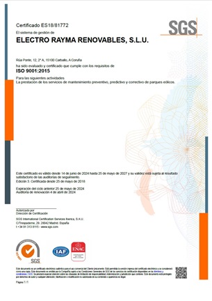 Por este motivo, contamos con un Sistema Integrado de Calidad, Medio Ambiente y Seguridad y Salud con alcance a nuestros servicios de MANTENIMIENTO PREVENTIVO, PREDICTIVO Y CORRECTIVO DE PARQUES EÓLICOS, certificado conforme a los requisitos de las normas: